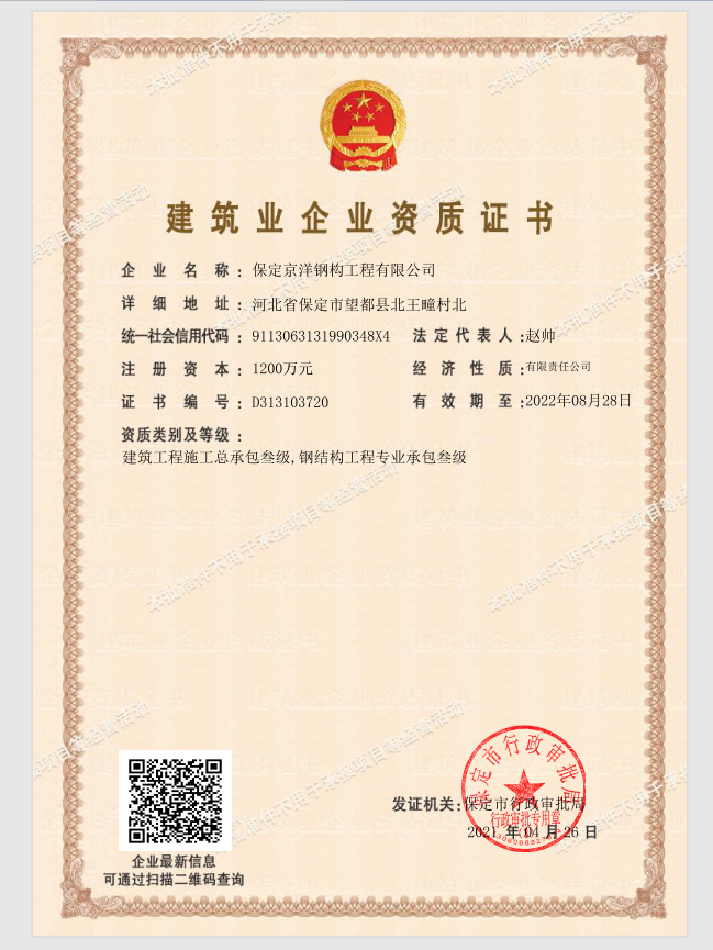 保定京洋鋼構(gòu)工程有限公司位于千年古縣望都。望都縣處于京津冀核心區(qū),是對(duì)接京津的交通要塞。距北京180公里,天津170公里,石家莊機(jī)場70公里。京石高鐵、京廣鐵路、京港澳高速、107國道四條交通大動(dòng)脈縱貫全縣。圍繞望都南北各一座高鐵站,定州站(30公里)和保定站(35公里)。京昆高速、保阜高速均有連接線,四條省級(jí)公路縱橫交錯(cuò),交通便捷。